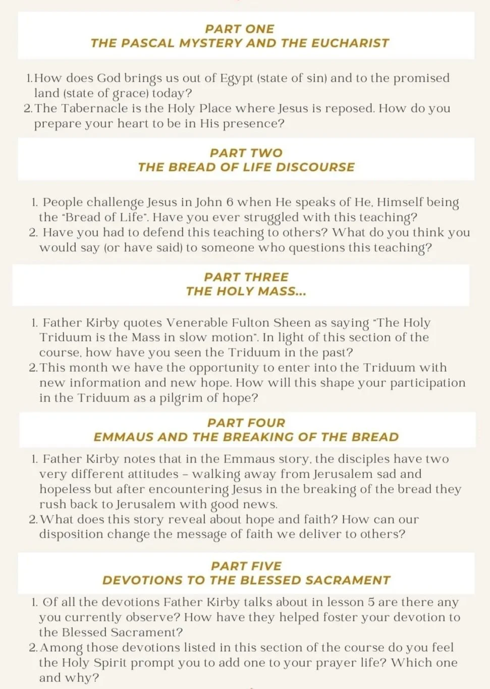 This month our focus begins on the holiest week of our liturgical year - Holy Week. Specifically meditating and participating in the Triduum. I’ve included in your binder package a print out of questions we can ask ourself each day of the Triduum to personalize where we are in our mind and heart as we enter into these holy days. We ask you to join us Good Friday as we pray the Divine Mercy Novena